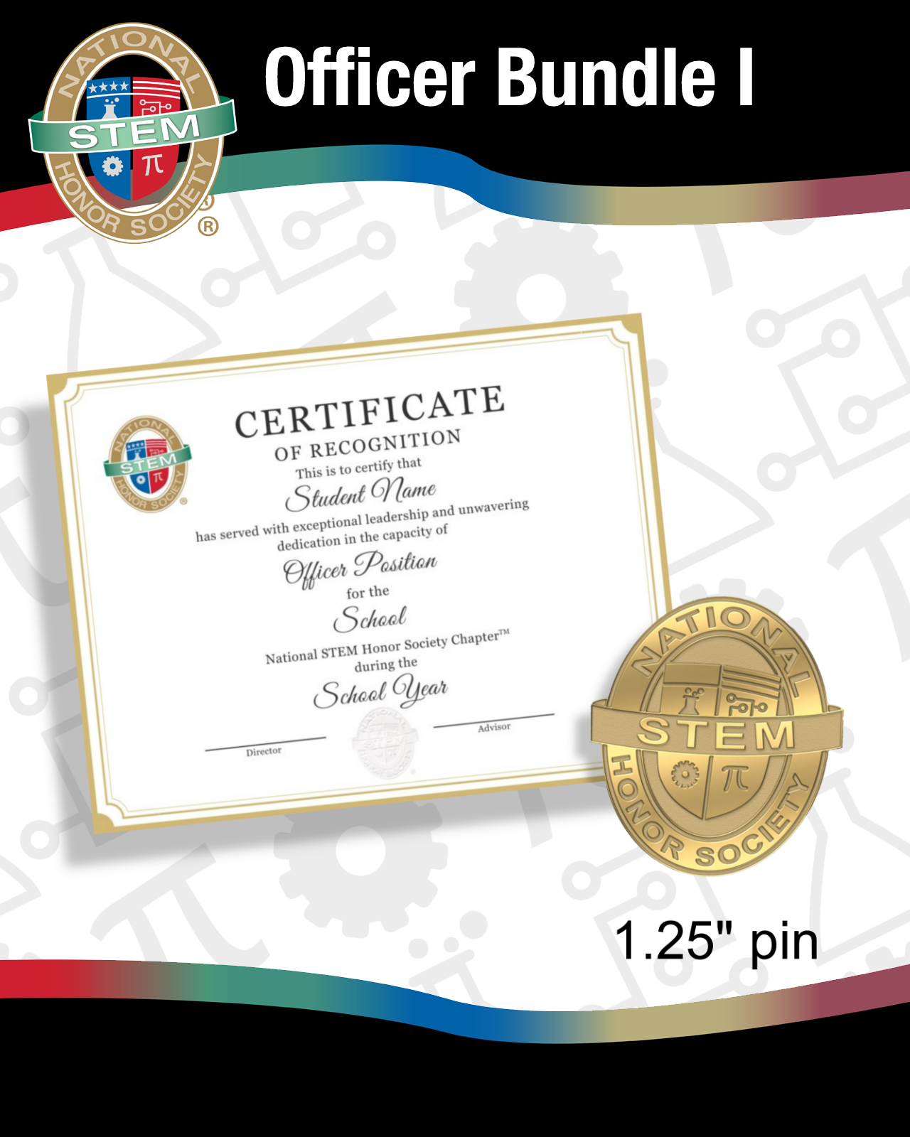 Recognize your officers with a custom pin and certificate they will wear with pride.