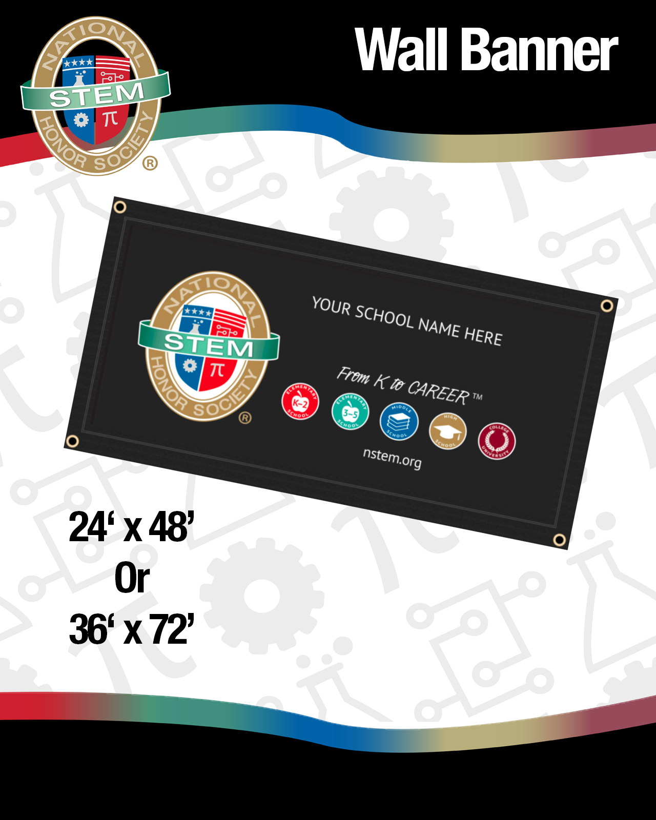 This professional-grade wall banner features personalized NSTEM branding, providing a distinguished presence at any gathering.